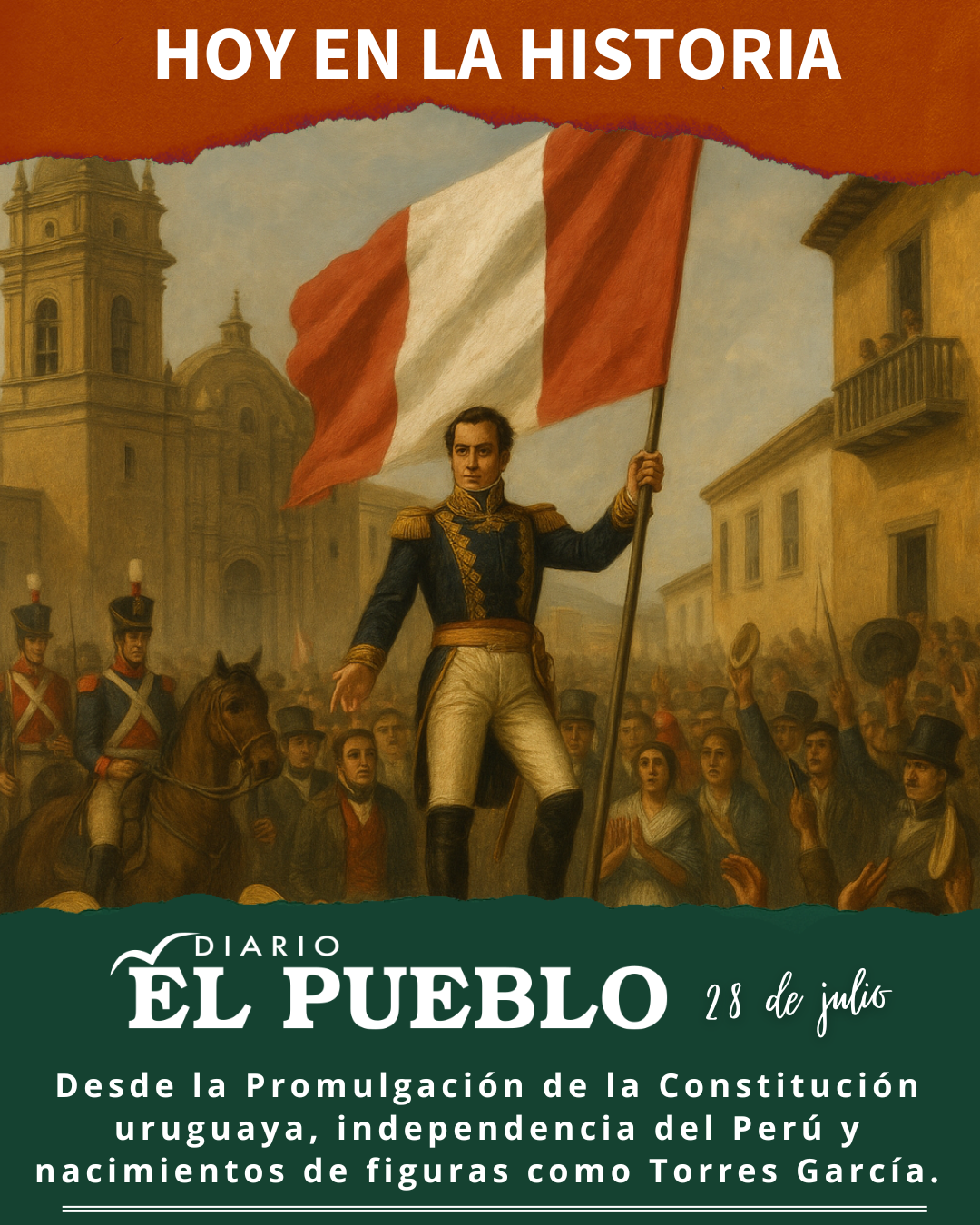 - 1830 – Promulgación de la primera Constitución uruguaya: El 28 de julio se promulgó oficialmente la primera Constitución de la República Oriental del Uruguay, consolidando el nacimiento del Estado nacional tras las guerras de independencia. Aunque el juramento se realizó el 18 de julio, esta fecha representa el inicio de la vida constitucional efectiva.