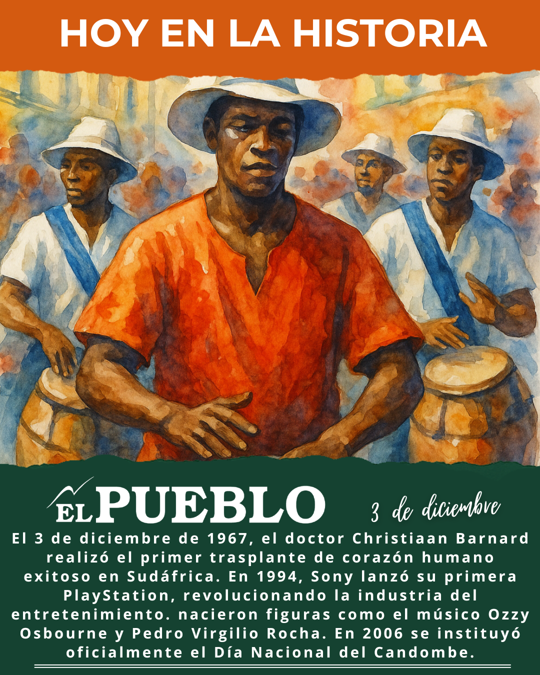 - 1967: En Ciudad del Cabo (Sudáfrica), un equipo liderado por el cirujano Christiaan Barnard realizó con éxito el primer trasplante de corazón humano de la historia.