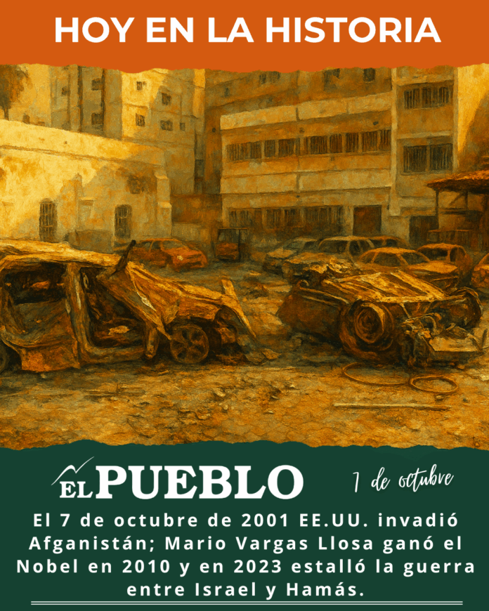 - 2001: Comienza la intervención militar anglo-estadounidense en Afganistán, dando inicio a la Operación Libertad Duradera. Fuerzas de Estados Unidos, con apoyo del Reino Unido y otros aliados, lanzan intensos bombardeos contra el régimen Talibán y las bases de Al Qaeda el 7 de octubre, menos de un mes después de los atentados del 11-S. Esta acción marca el inicio de la guerra de Afganistán, un conflicto que se prolongaría por casi 20 años.
