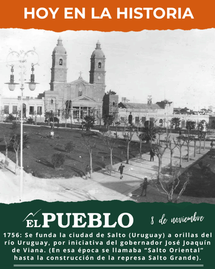 - 1756: Se funda la ciudad de Salto (Uruguay) a orillas del río Uruguay, por iniciativa del gobernador José Joaquín de Viana. (En esa época se llamaba “Salto Oriental” hasta la construcción de la represa Salto Grande).