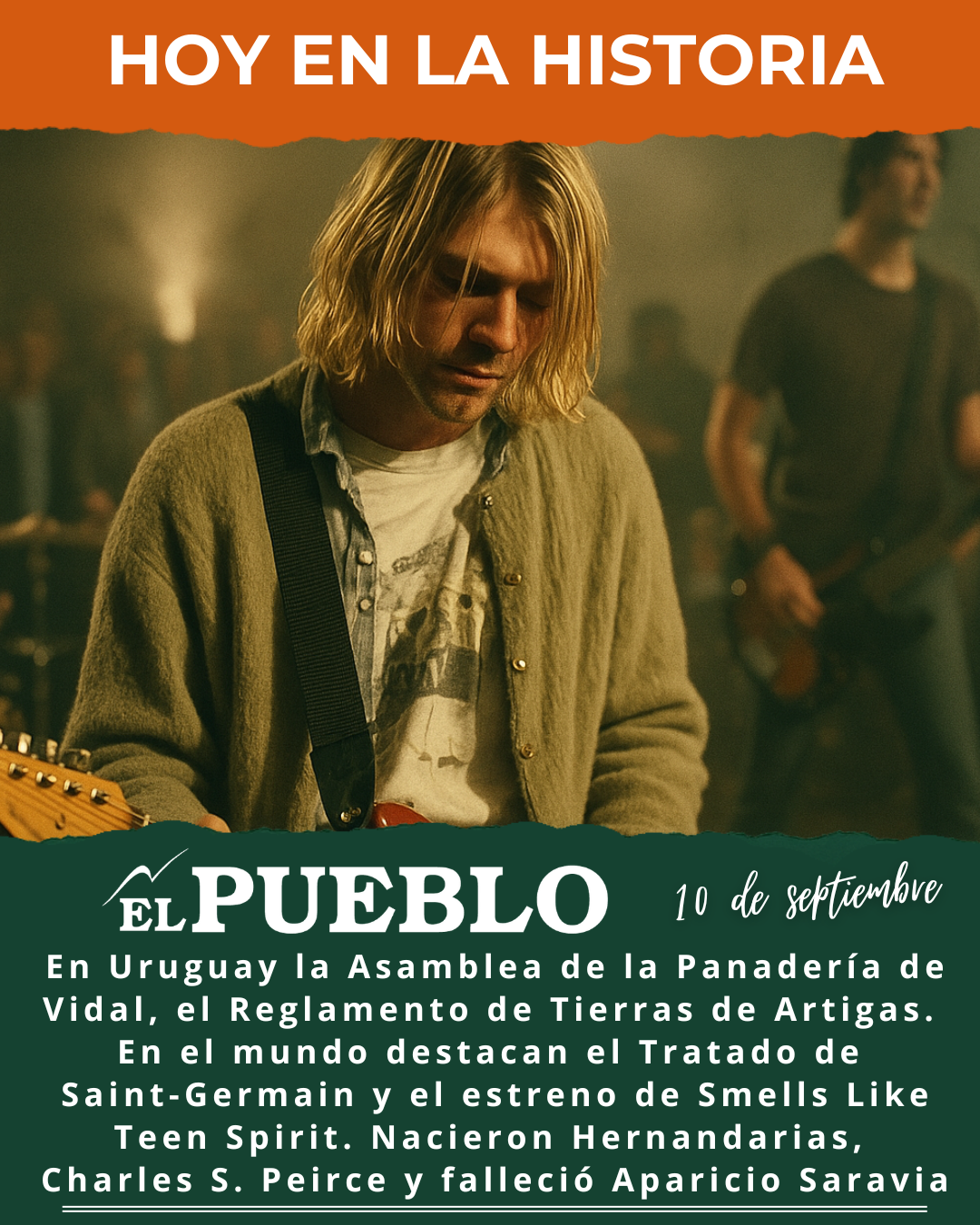 - 1991 – Himno del grunge: El 10 de septiembre de 1991 se lanzó “Smells Like Teen Spirit” de Nirvana, sencillo que se convirtió en emblema del movimiento grunge y de la juventud de los 90. La canción catapultó a Nirvana (y a su líder Kurt Cobain) a la fama global e inauguró una nueva era en la música rock.