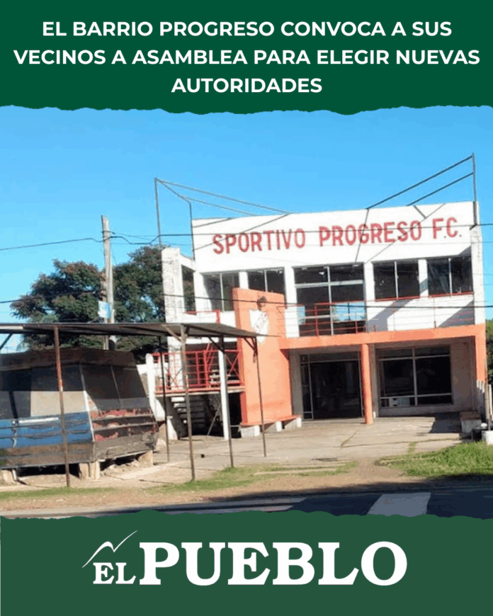 En el marco del proceso de renovación de comisiones vecinales, el barrio Progreso convoca a todos sus vecinos a participar de una asamblea general para la elección de sus nuevas autoridades.