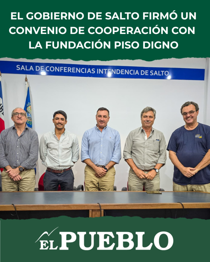 El Gobierno de Salto firmó este lunes un convenio de cooperación con la Fundación Piso Digno, con el objetivo de profundizar el trabajo conjunto destinado a mejorar las condiciones habitacionales de familias en situación de vulnerabilidad en el departamento.
