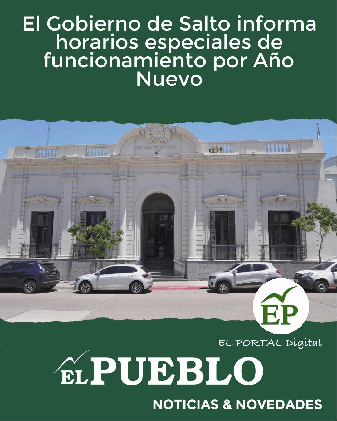 El Gobierno de Salto comunica a la población que, con motivo de las celebraciones de Año Nuevo, el día miércoles 31 de diciembre de 2025 las dependencias de la Intendencia de Salto cumplirán un horario especial de funcionamiento.