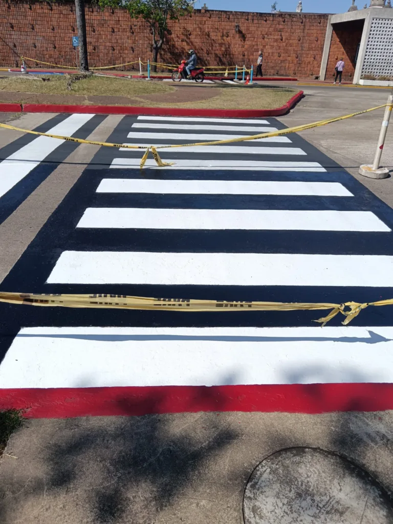 Las tareas incluyen la pintura y reacondicionamiento de sendas peatonales (cebras) y otras marcas viales en áreas de alto tránsito, priorizando aquellos sectores donde la circulación de personas y vehículos es más intensa.