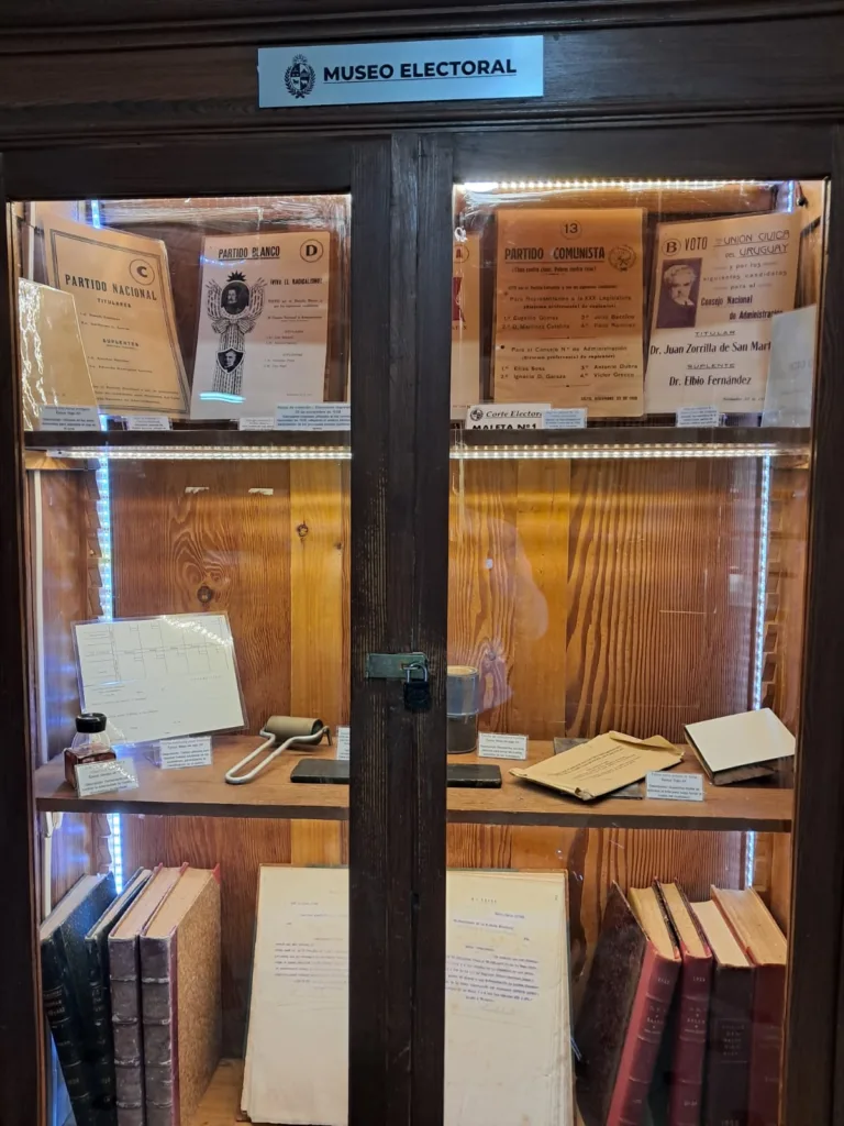 El museo, instalado en el hall del edificio, reúne una colección cuidadosamente seleccionada de piezas históricas: urnas utilizadas en elecciones pasadas, formularios de inscripción cívica de los años treinta, padrones manuscritos, fotografías de máquinas de escribir que marcaron toda una época.