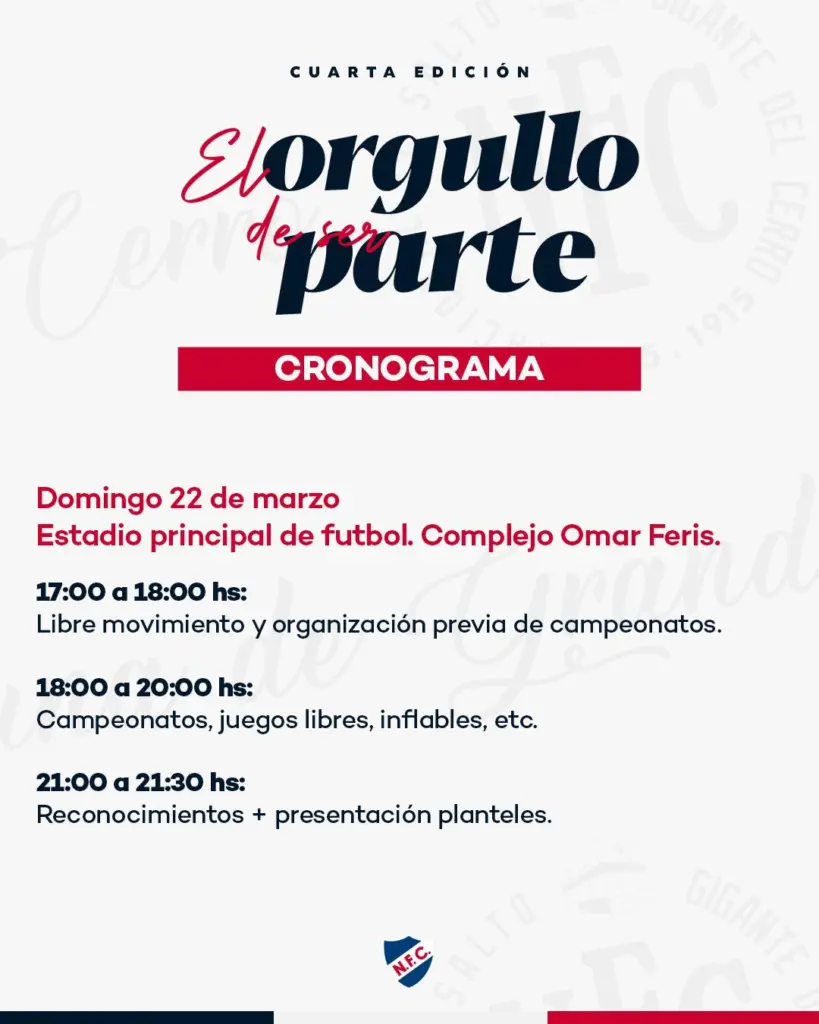 «El evento se llama «El Orgullo de ser parte» y es la cuarta edición que se hace. Es un evento del club abierto a todo público. Habrá competiciones internas, juegos, presentación de los planteles de todas las categorías y todas las disciplinas. Este año además se realizan reconocimientos a los mejores deportistas de nuestro club en la anterior temporada 2025. Cada premio lleva nombre de deportistas o personajes destacados en cada rubro de nuestra institución».