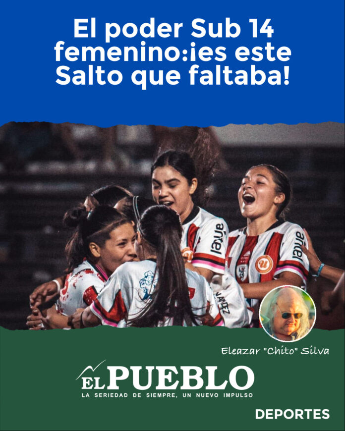En la instancia de Cuartos de Final jugando en el Parque Dickinson, la expresión ofensiva de Salto en categoría Sub 14, había resultado inapelable, hasta alcanzar el 4 a 0 final. El derecho de ser semifinalista del Campeonato Integración OFI-AUF. El sábado pasado en la tarde-noche del Parque Dickinson, fue empate 1 a 1 ante Nacional de Montevideo, pero en los penales, las nuestras no fallaron. La certeza en los remates a la hora señalada, para situar un 4 a 1 definitivo. Las conversiones de Constanza Carrera, Sofía Ordeix, Alexa Maksimchuk y Paulina Cuello. La celebración con justificativos, desde el momento que Salto accede a la final ante las ganadoras de Liverpool y Durazno. Quien se acredite la final, asumirá la representación de Uruguay en setiembre del año que viene en Paraguay, en un certamen que impulsa Conmebol y que denomina Liga de Desarrollo-Evolución Femenino. Para el apunte: Salto en Sub 14 llegó al partido ante Nacional, habiendo practicado solo un día: el viernes. Al decir del DT Fernando Díaz, a EL PUEBLO, «hay que suponer que Nacional no pasó un solo día sin practicar. Eso acreciente el mérito por esa victoria que fuimos a buscar»En la hora detodo el plantel Es de justicia estricta, la mención de quienes le conforman: Aldana Méndez, Alexa Maksimchuc, Alfonsina Cavani, Camila Da Silva, Catalina Rivero, Constanza Carrera Danna Pintos Dominik Ruffinelli, Florencia Ugolini, Francesca Muzzetti, Guadalupe Odriozola, Karolina Guimaraens, Luisana Ríos, Maia Borges, Manuel Petraglia, Martina Silva y Monti, Milena Almeida, Naiara Robledo, Nicol Cuello, Paholina Martínez, Paulino Cuello, Paulina Rodríguez, Pía Rodríguez, Ruth Pereira, Sofía Ordeix, Tatiana Santos, Victoria Mattos.
