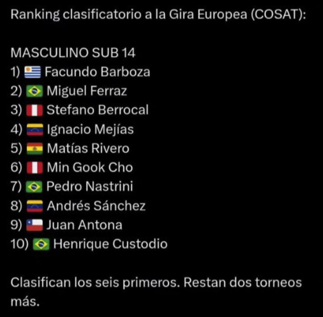 Facundo Barboza, joven promesa del tenis, ha asegurado su clasificación a la prestigiosa Gira Europea 2025 tras una destacada participación en la Gira Sudamericana, que consta de 10 torneos realizados en distintos países de la región. Los seis mejores jugadores de esta competencia clasifican para participar en torneos en Francia y Alemania durante el mes de julio de 2025.