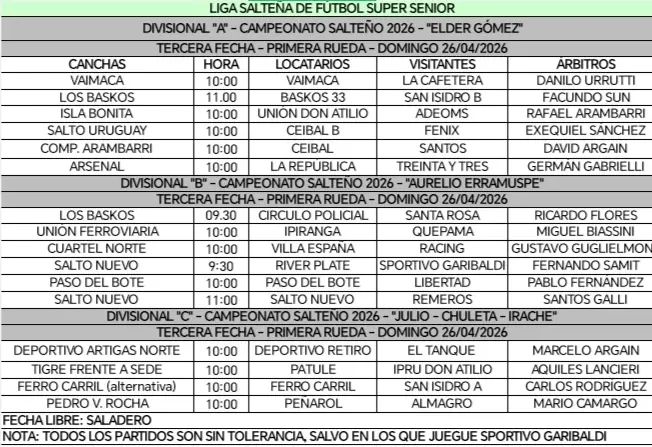 Porque madrugan los domingos a la mañana y se ponen a jugar, en el marco de una Liga que es válido ejemplo de organización. Del detalle de cada partido a cada cancha y con los árbitros centrales resueltos. Es el fútbol que se viene para la Liga de Fútbol Súper Sénior. La tercera fecha está pactada. Solo hay que descubrir desde EL PUEBLO, el calendario en todos los casos.