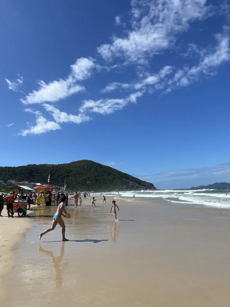 – Si viajaste tantas horas para venir a Floripa, no rompas las… que apenas van comenzando las vacaciones.