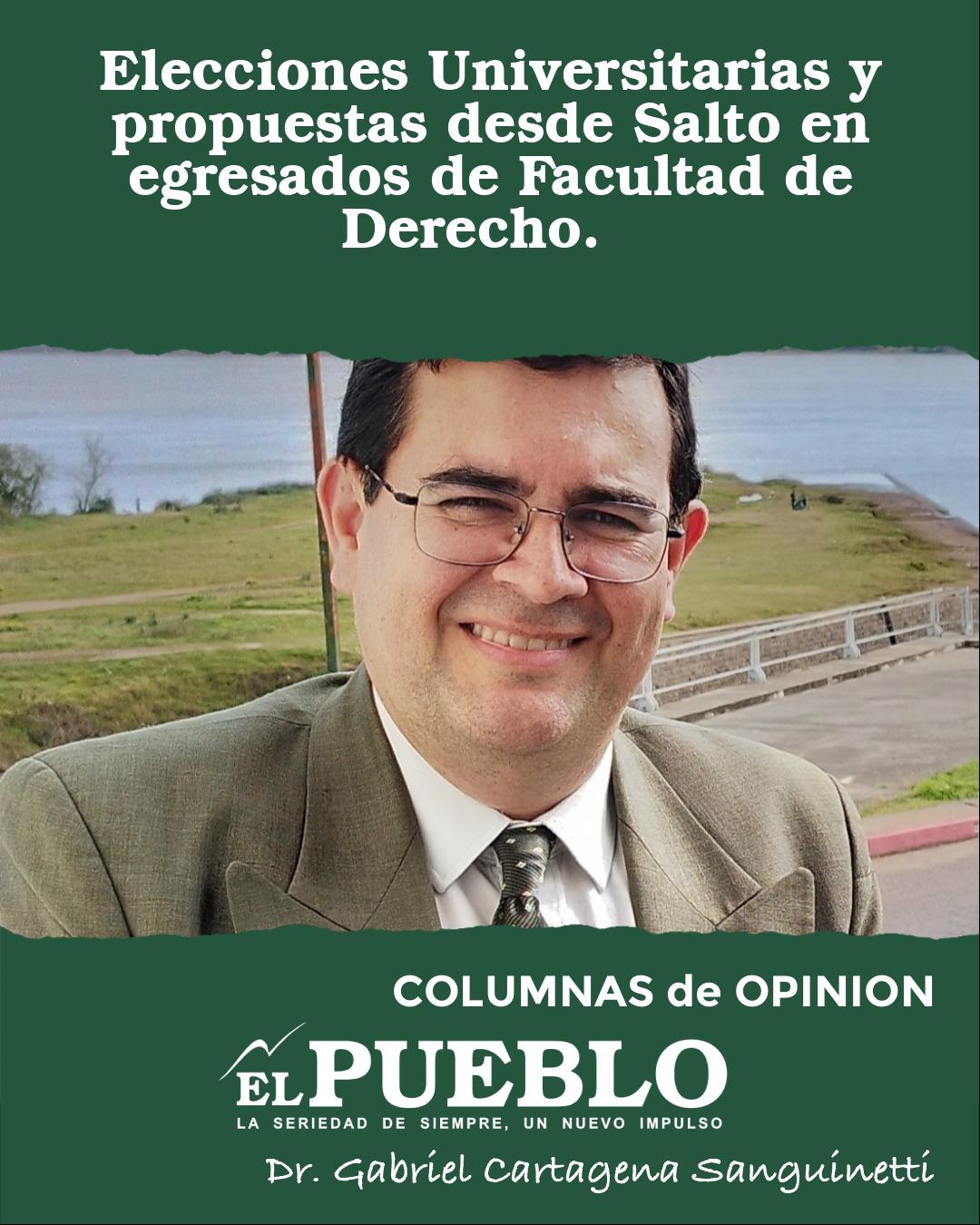 Gabriel Cartagena nos informa que una vez más se vienen las elecciones universitarias y desde Salto se está trabajando en la conformación de un grupo de egresados de Facultad de Derecho con distintas opiniones que los une un mismo criterio de labor hacia la Universidad y en especial hacia nuestra querida Regional Norte.