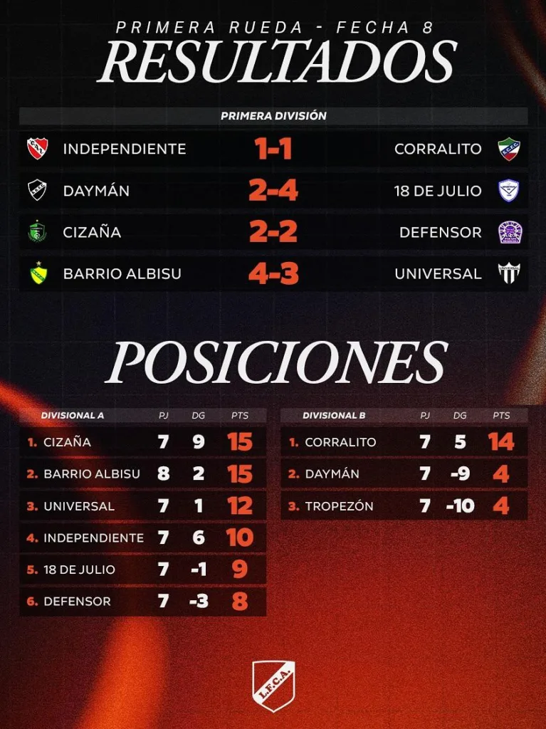 Por lejos el partido de más goles, para que Barrio Albisu explotara con el 4 a 3 final. Tanto en la Divisional A como en la B, de los partidos jugados a la tabla de posiciones.