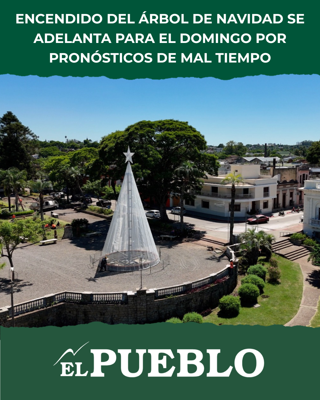 El Gobierno de Salto anunció que el tradicional Encendido del Árbol de Navidad no se realizará el lunes como estaba previsto. La decisión surgió luego de que los pronósticos meteorológicos anticiparan condiciones adversas, motivo por el cual el evento se adelantará para el domingo 7 de diciembre, manteniendo el escenario original en la Plazoleta Roosevelt (Uruguay esq. Chiazzaro).