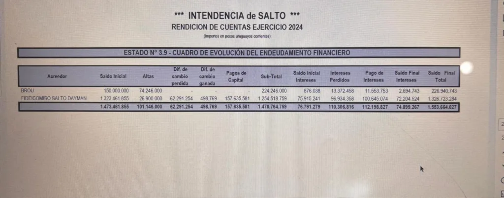 El exsecretario general de la Intendencia de Salto, Gustavo Chiriff, rebatió las declaraciones de las nuevas autoridades departamentales, quienes hablaron de una «profunda crisis financiera» y una deuda impaga de $300 millones con el Banco República. Señaló que la deuda del Banco República, conocida como el “duodécimo ”, ya estaba incluida en la Rendición de Cuentas 2024, por lo que la administración entrante «la conocía«.