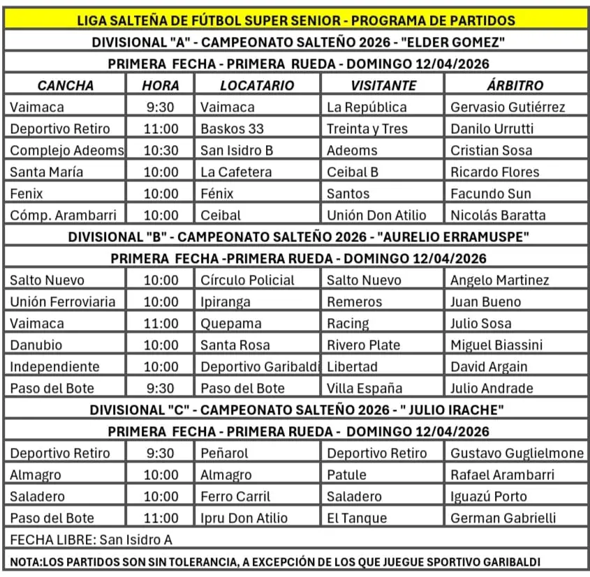 Un total de 33 equipos despuntan hoy a la mañana, para jugar la primera fecha del Torneo Súper Sénior. Uno permanecerá libre y en este caso es San Isidro «A». Son tres divisionales. Todo un fenómeno el fútbol de la Liga Súper Sénior. A palpitación encendida y de partido a partido.