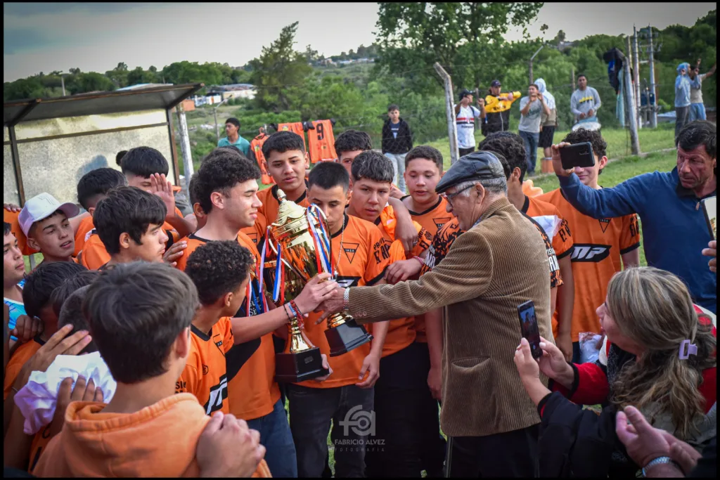 Por eso llegaría este momento en que el ex árbitro de fútbol de los años 80 y 90 acredita el trofeo a los flamantes protagonistas del ascenso. Cuestiones de emociones para Sud América en juveniles y para el «Chato» del fútbol, ni que hablar.