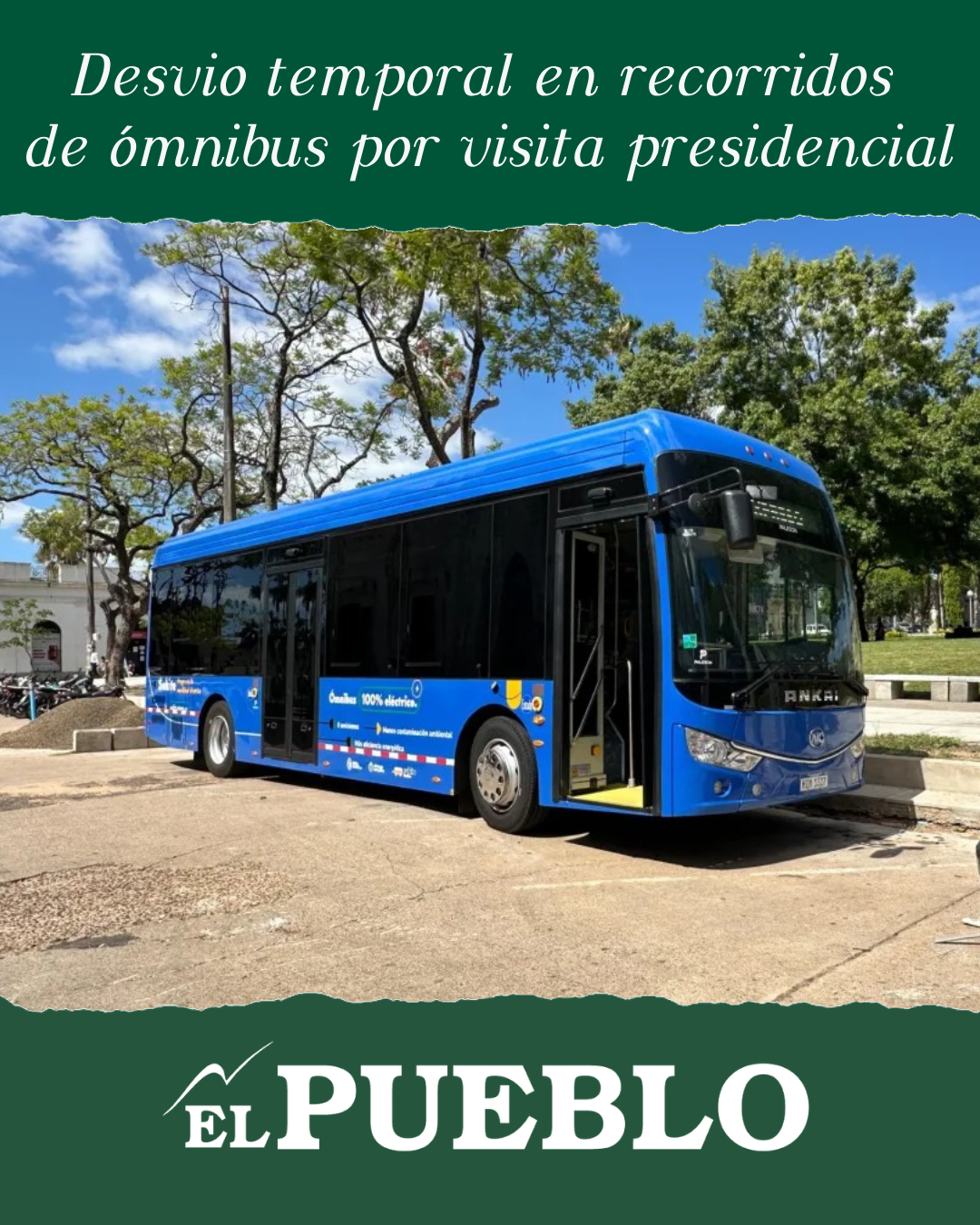 La Unidad Ómnibus del Gobierno de Salto informó a la población que, con motivo de la visita del presidente de la República, Yamandú Orsi, prevista para este viernes 24 de octubre, se implementará un desvío temporal en los recorridos de las líneas que circulan por calle Artigas, entre las 9:00 y las 14:00 horas.