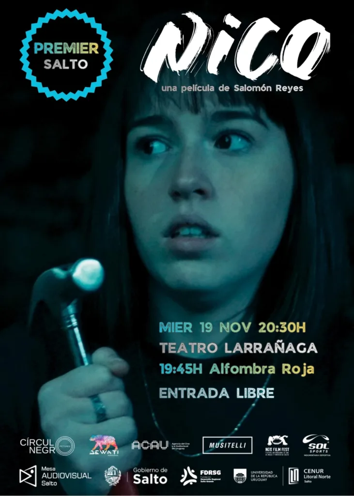 Miércoles 19. La Mesa Audiovisual Salto realizará este miércoles el estreno local de la película “Nico”, dirigida por Salomón Reyes, un proyecto que despierta especial expectativa porque fue filmado íntegramente en la ciudad de Salto, con un equipo local y regional que apostó fuerte por el desarrollo del cine en el Interior.