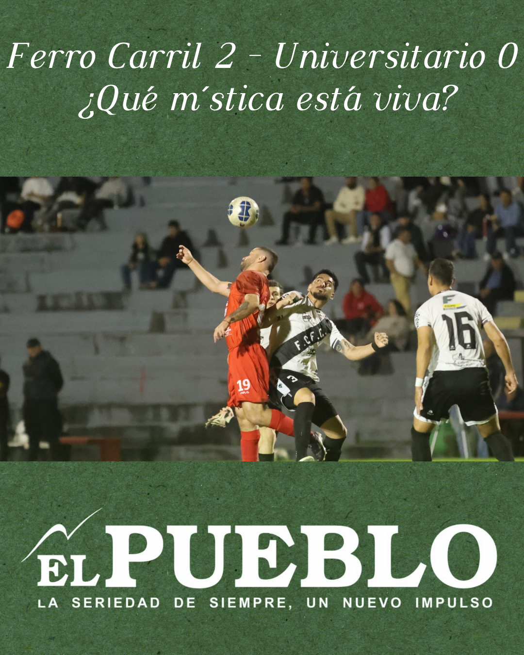 -Cuántas veces en el tiempo, en las décadas, en la historia, se fue invocando «la sagrada mística» de Ferro Carril, que tenía que aparecer, cuando la urgencia estaba planteada. Entonces, a partir de la necesidad de vencer, fue como relámpago desde el horizonte albinegro. ¿Hay que hablar de aquella mística de Ferro Carril, que acaso clava los tres puntos más trascendentes desde que inició la temporada? ¿Hay que suponer que la mística está viva? Porque este Ferro Carril de ayer a la noche en el Dickinson, terminó ganando con autoridad, después de las flojedades estructurales de los primeros 25′ cuando Universitario más o menos reveló sentido unitario, con la consiguiente influencia de Fornaroli. Pero a partir del gol de Natanel Tabárez, Ferro descubrió a Ferro. En la actitud. En la consistencia defensiva, en la variación de ese no tanto pelotazo. O sea: mejoró la propuesta. La misma que se cimentó aún más en los 45′ finales. Porque ese golazo de Blanco Grieves a los 12′ terminó por ser estocada con destino de victoria. Metiendo la gambeta a velocidad por el callejón externo, y el sacudón de la derecha. Fue el 2-0. Las variantes en Universitario sin que prosperaran y para colmo, la expulsión de Santiago Díaz, uno de los incluídos. Ferro Carril manejó los tiempos desde su propia certidumbre y fue un cierre de puertas defensivas para el Universitario que cada vez pesó menos, a partir de la resignación física general. El equipo perdió vitalidad y perdió humor. No le encontró la vuelta. Ferro Carril fue el ganador de la elocuencia. Del dictamen irrebatible. De repente, algo o tanto de mística, como aquella mística. La del ayer. La de ese ayer, no tan lejano. Ni tan distante.