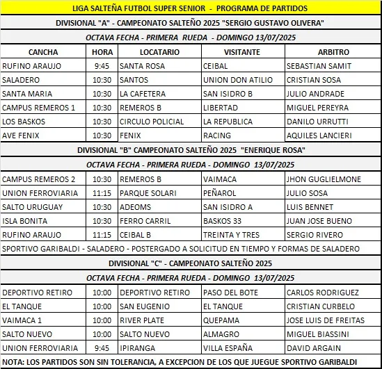 Domingo a la mañana, es la mañana del Súper Sénior. La tradición instalada, por eso con la nueva fecha, la creciente motivación de cada partido y en cada Divisional. Desde EL PUEBLO, relevamiento de la nueva secuencia. Es la octava fecha de la primera rueda.