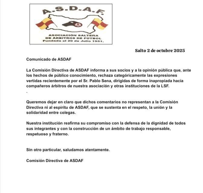 La Asociación Salteña de Árbitros de Fútbol (ASDAF) propaló un comunicado en la jornada de la víspera, atento a determinados enfoques y juzgamientos surgidos desde un asociado.