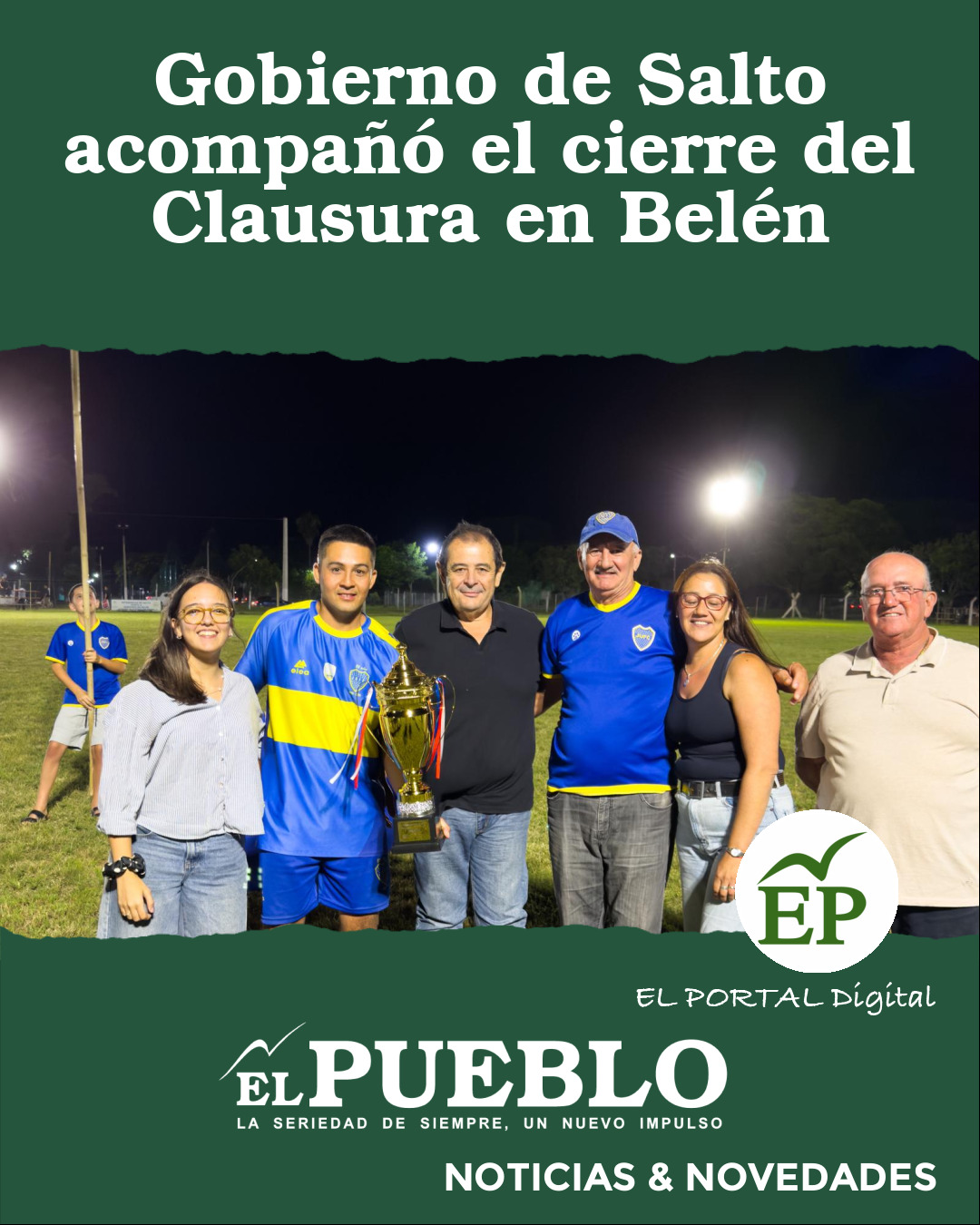 En representación del Gobierno de Salto, el director de Descentralización, Daniel Galliazzi, junto a la edil Sofía Viera y los concejales del Municipio de Belén, Gustavo Viera y Giulliana Finozzi, participó de la ceremonia de premiación. En la ocasión se entregaron los trofeos al campeón Juventud y al vicecampeón Peñarol, reconociendo el esfuerzo sostenido de ambos planteles durante el campeonato.