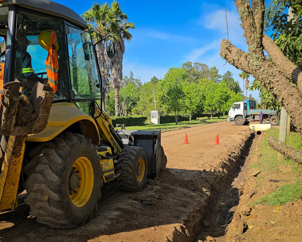 La Dirección de Obras del Gobierno de Salto intensificó los trabajos en una importante intervención vial en los barrios La Chinita y Jardines de Daymán, un sector de gran relevancia residencial y turística para el departamento.