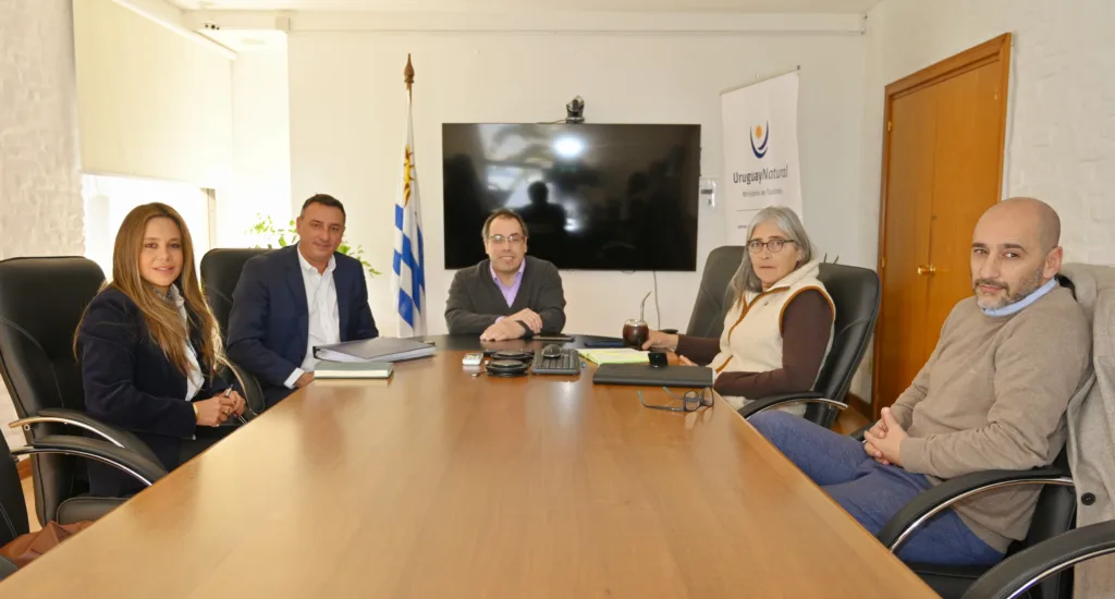 El intendente de Salto, Dr. Carlos Albisu, acompañado por la Cra. Vera Facchín de su equipo de gobierno, mantuvo una reunión clave con el ministro de Turismo, Pablo Menoni, y la ministra de Transporte y Obras Públicas, Lucía Etcheverry, para tratar proyectos de infraestructura que buscan potenciar el desarrollo del departamento.