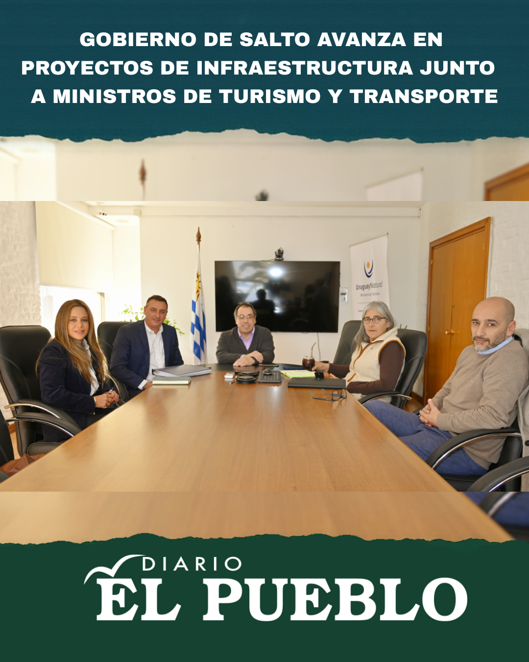 El intendente de Salto, Dr. Carlos Albisu, acompañado por la Cra. Vera Facchín de su equipo de gobierno, mantuvo una reunión clave con el ministro de Turismo, Pablo Menoni, y la ministra de Transporte y Obras Públicas, Lucía Etcheverry, para tratar proyectos de infraestructura que buscan potenciar el desarrollo del departamento.