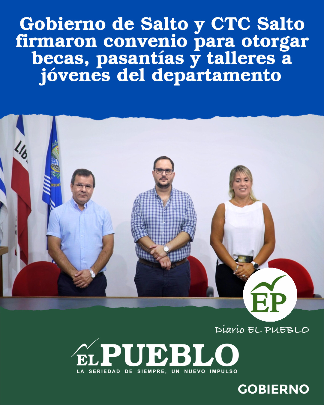 El Gobierno de Salto y el CTC Salto firmaron un convenio marco de cooperación que permitirá el desarrollo de becas, pasantías y talleres destinados a jóvenes del departamento.
