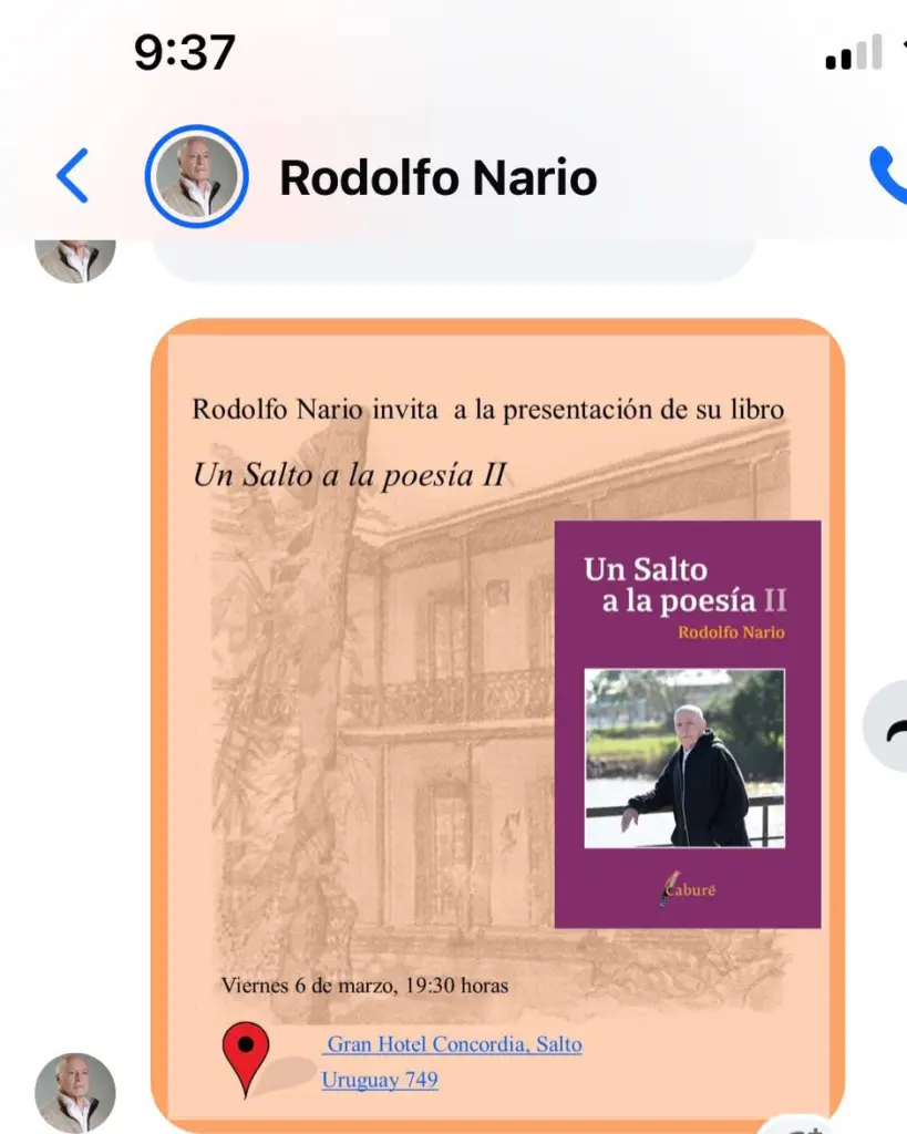 “El pasado viernes 6 de marzo, el Centro Cultural del Gran Hotel Concordia se vistió de gala para recibir a una de las figuras más singulares de la cultura y el deporte local: Rodolfo Nario. Ante un auditorio colmado de amigos, referentes de las letras y vecinos, el autor presentó su más reciente obra, Un Salto a la Poesía II.