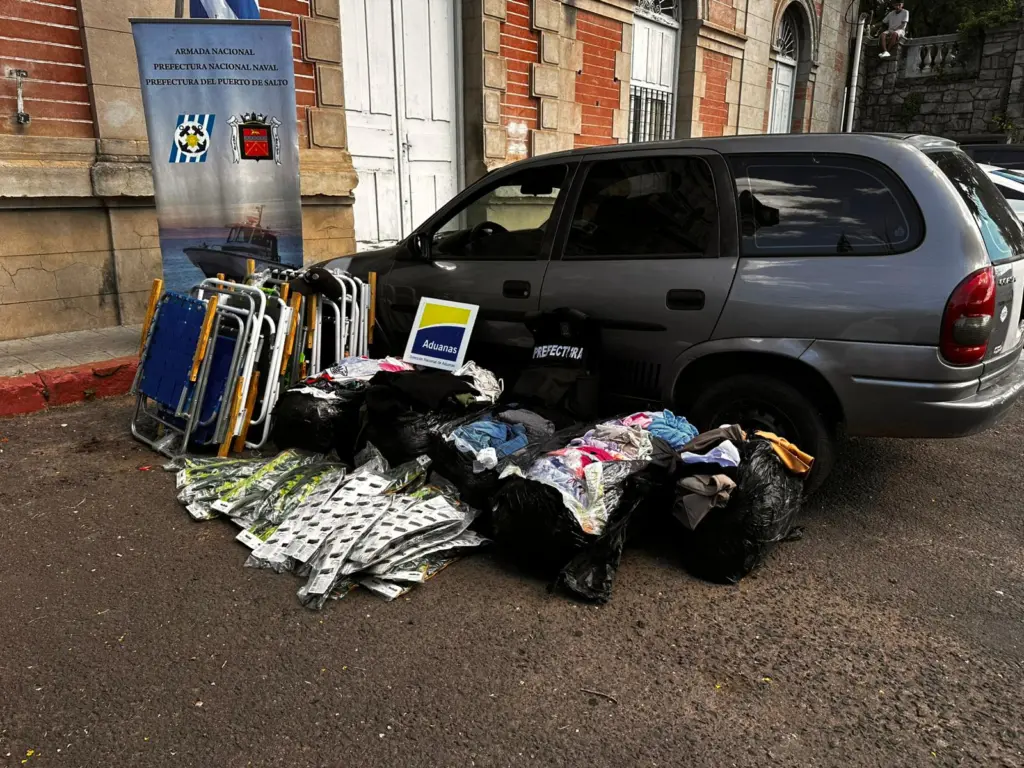 En el procedimiento se incautó el vehículo y un total de 17 bultos de mercadería, que contenían vestimenta variada, máquinas de afeitar y diez sillas playeras.
