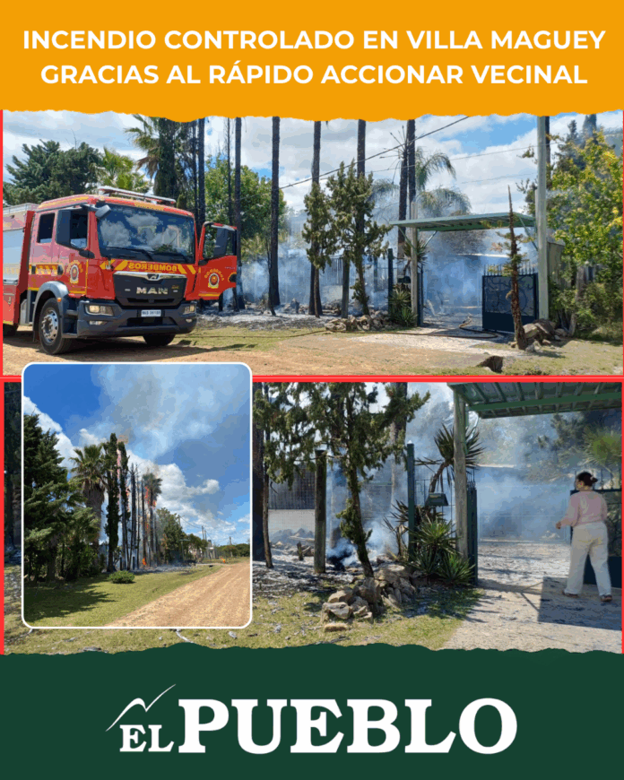 Un incendio registrado este jueves en Villa Maguey, Salto, pudo ser rápidamente controlado gracias a la intervención inmediata de los vecinos, quienes actuaron antes de la llegada de Bomberos.