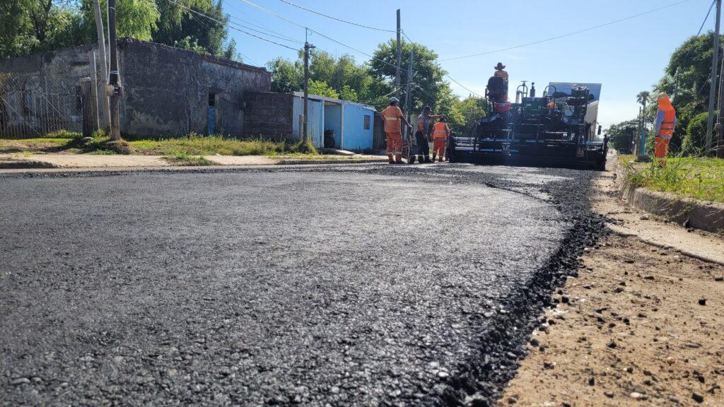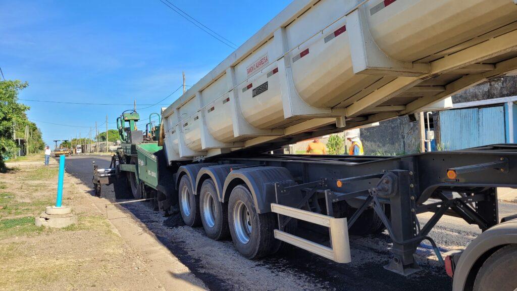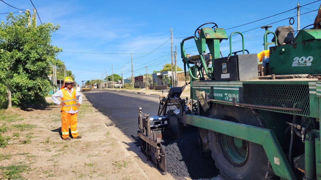 El intendente interino de Salto, Gustavo Chiriff, y el director de Obras, Álvaro Gómez, recorrieron las obras en la calle Instrucciones del Año XIII del barrio Artigas, donde supervisaron la colocación de carpeta asfáltica, llevada a cabo en colaboración con la empresa Ramón Álvarez.