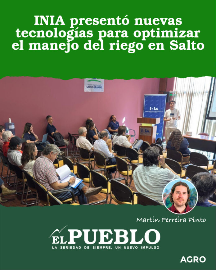 El pasado martes se desarrolló en el Anfiteatro de la Estación Experimental de INIA Salto Grande la jornada “Desarrollo de tecnologías para facilitar el manejo del riego”, un encuentro organizado por INIA y la Plataforma de Innovación AgTech CONVERGE, que reunió a productores, técnicos, investigadores, estudiantes y actores del ecosistema tecnológico interesados en soluciones digitales aplicadas al uso eficiente del agua.