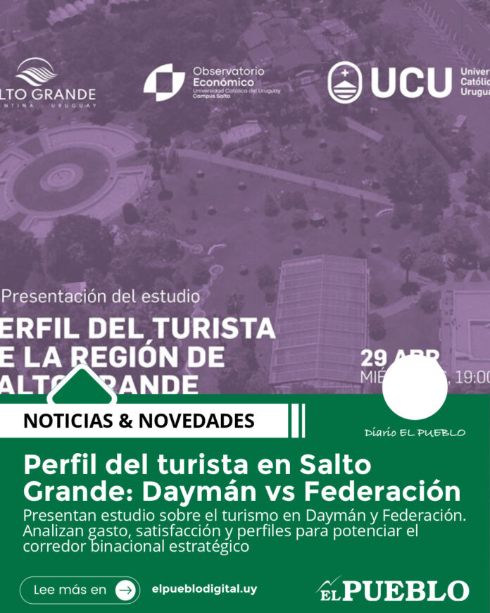 El próximo miércoles 29 de abril, a las 19:00 horas, el Campus Salto de la Universidad Católica del Uruguay (UCU) presentará los resultados de una investigación clave sobre el perfil del turista en la región de Salto Grande. El estudio, desarrollado por el Observatorio Económico de la UCU con apoyo de la delegación uruguaya de la Comisión Mixta de Salto Grande, analiza el comportamiento en los centros termales de Daymán y Federación.