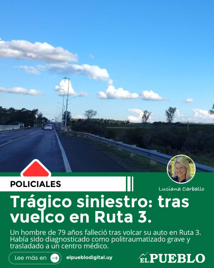 Al lugar acudió una unidad médica, que realizó el traslado del conductor del automóvil, de 79 años, al Centro Médico de Salto. Visto por el médico de guardia, se le diagnosticó “politraumatizado grave”.