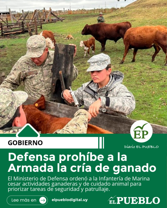 El Ministerio de Defensa ordenó a la Infantería de Marina cesar actividades ganaderas y de cuidado animal para priorizar tareas de seguridad y patrullaje.