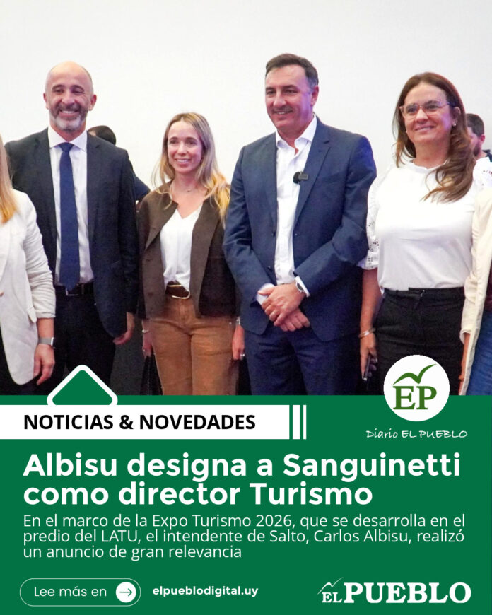 En el marco de la Expo Turismo 2026, que se desarrolla en el predio del LATU, el intendente de Salto, Carlos Albisu, realizó un anuncio de gran relevancia: la designación del ex ministro Dr. Eduardo Sanguinetti como nuevo director de Turismo del Gobierno departamental.