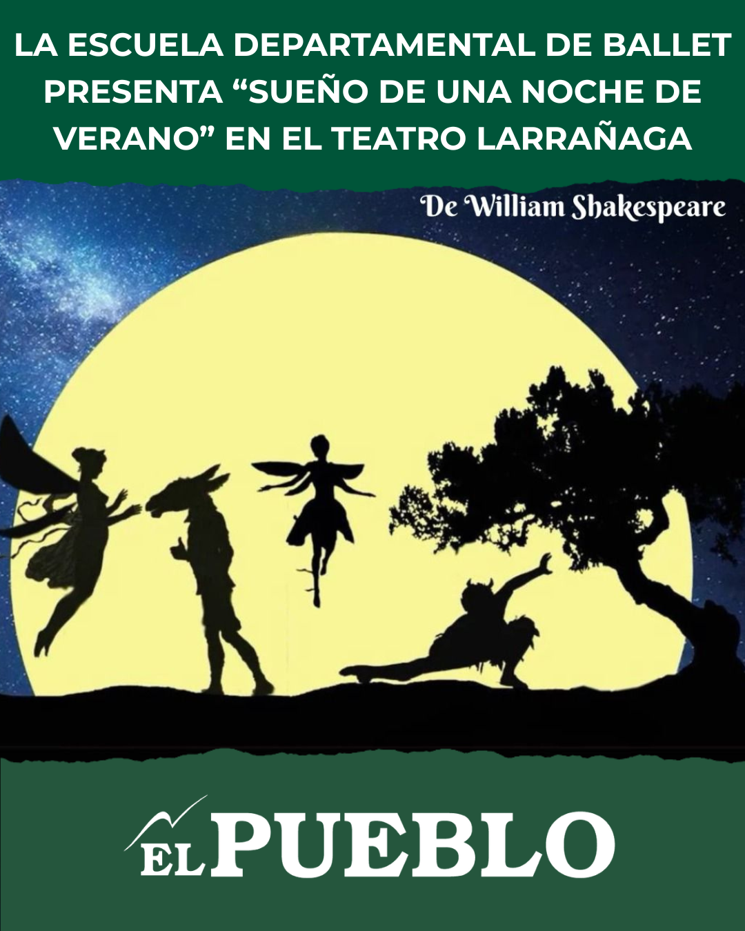 La Escuela Departamental de Ballet de Salto presentará el viernes 12 de diciembre, a las 20:00 horas, la obra “Sueño de una Noche de Verano”, inspirada en el clásico de William Shakespeare.
