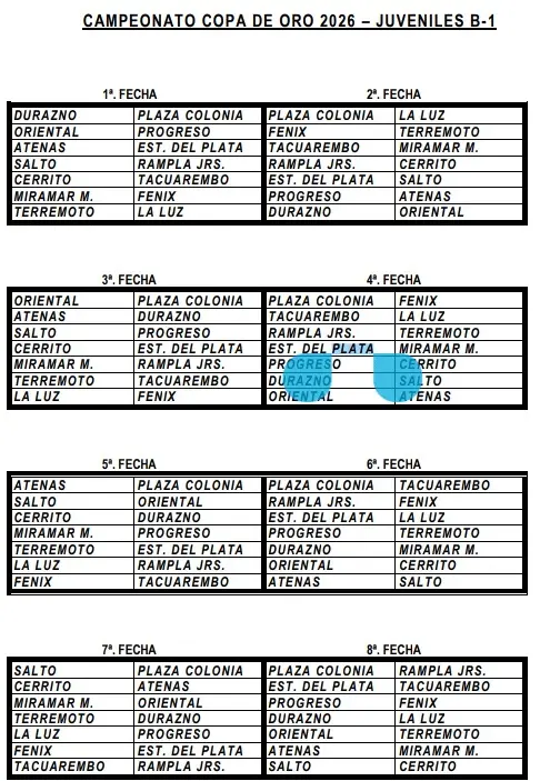 La revelación de todo el calendario de partidos a nivel de la Divisional B, si de juveniles se trata en la Asociación Uruguaya de Fútbol. Cabe recordar que Salto Fútbol Club será uno más, desde el momento que el año pasado resignó la categoría. El estreno «naranjero» se producirá ante Rampla Juniors, con algunos partidos en el Parque Juan José Vispo Mari y los restantes en el estadio Olímpico de los «picapiedras»