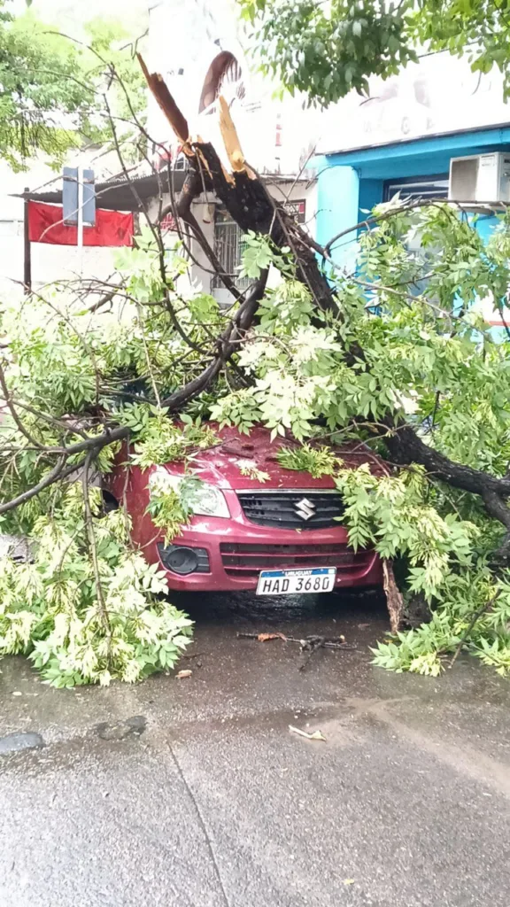 La fuerte tormenta de viento que azotó anoche la ciudad de Salto y alrededores dejó varios árboles y ramas caídos.
