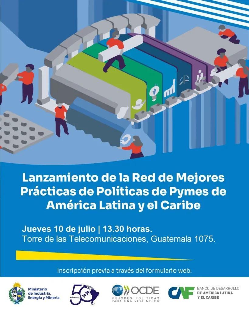 La Red de Mejores Prácticas de Políticas para Pymes de América Latina y el Caribe se lanzará el 10 de julio, a las 13:30 horas, en la Torre de las Telecomunicaciones (sala Idea Vilariño, Guatemala esquina Paraguay). Esta jornada abierta reunirá a autoridades y a representantes del sector privado y de organismos internacionales, que compartirán experiencias y debatirán sobre las principales tendencias, desafíos y oportunidades para las pymes de la región. Entre las autoridades estarán la ministra de Industria, Energía y Minería, Fernanda Cardona, y la ministra interina de Relaciones Exteriores, Valeria Csukasi.