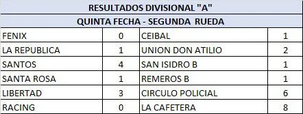 La quinta fecha de la segunda rueda que se jugó en la Divisional «A» en la Liga de Fútbol Súper