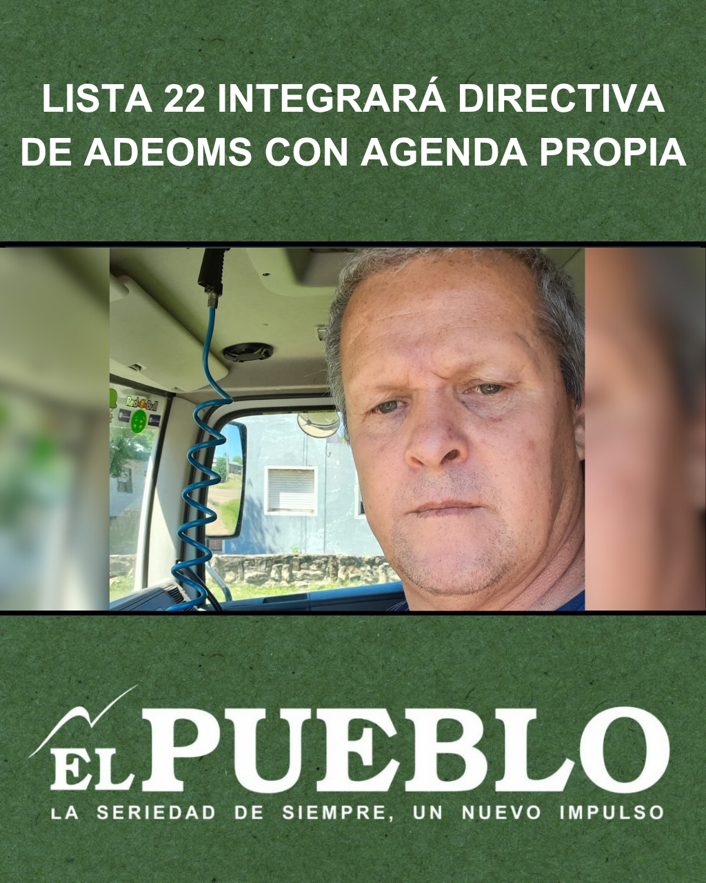 Ruben Albarengue, líder de la Lista 22 que disputó las recientes elecciones de ADEOMS, analizó el panorama sindical en diálogo con Diario El Pueblo. Habiendo asegurado cuatro cargos en la directiva y un puesto en la comisión fiscal, la agrupación se prepara para una gestión de contralor y propuestas firmes, marcando diferencias con la conducción de Juan Carlos Gómez (Lista 1966).