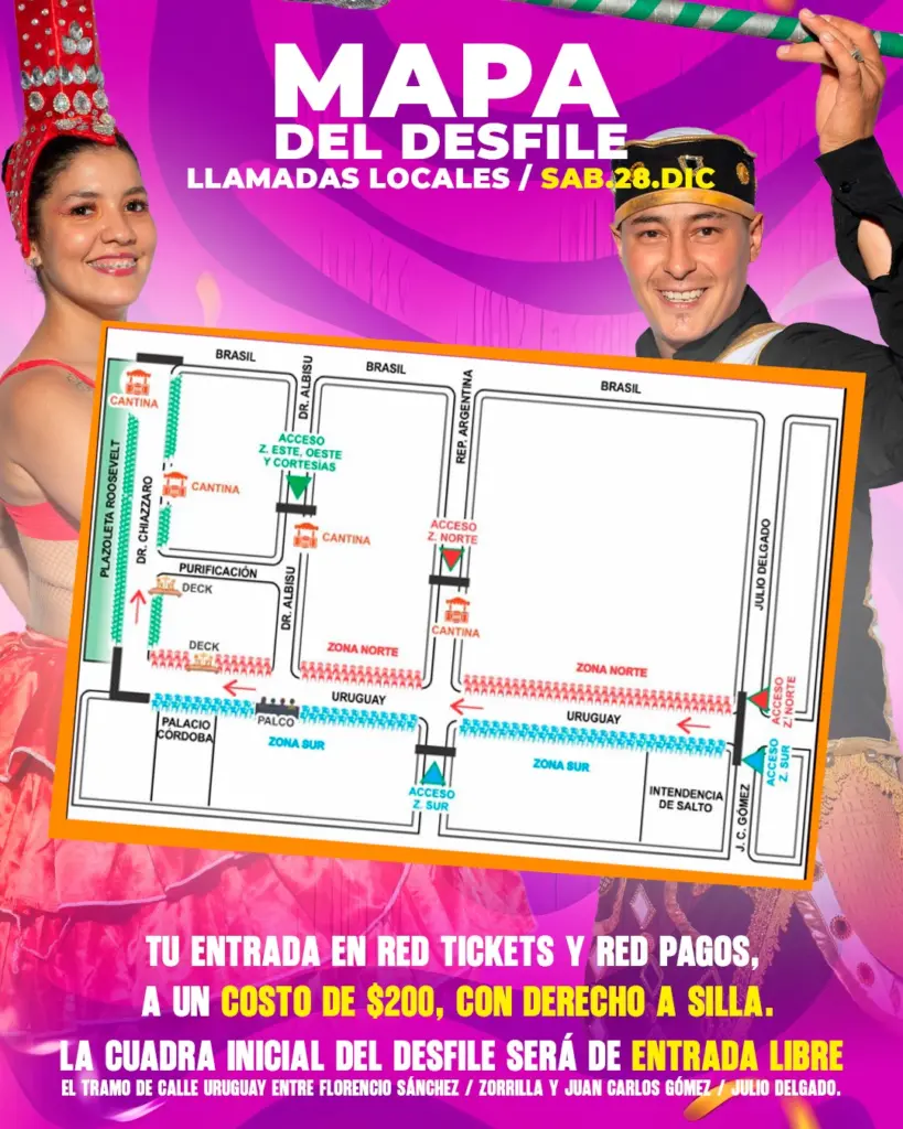 Al finalizar el espectáculo, se dispondrá de un servicio especial de ómnibus desde el cruce de calles Brasil y República Argentina, con destino a distintos barrios, facilitando el retorno del público tras el cierre del desfile.