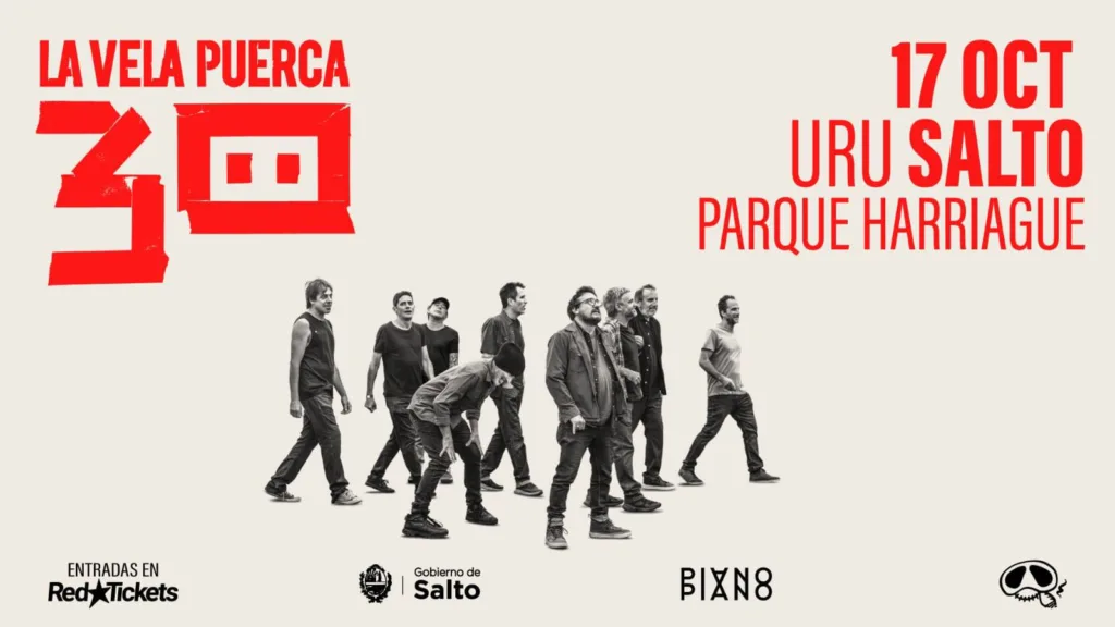 Con el apoyo del Gobierno de Salto, La Vela Puerca festeja sus tres décadas de historia con un gran show aniversario en el escenario Víctor Lima del Parque Harriague, este viernes 17 de octubre a las 21:00 horas, en el marco de una gira nacional que celebra una trayectoria única dentro del rock uruguayo.