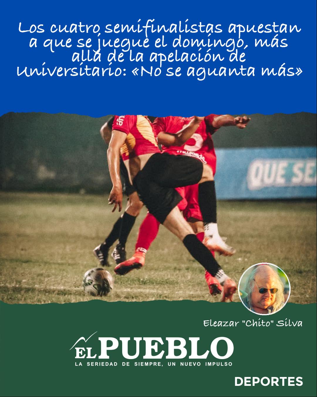 Tras revelarse el pronunciamiento del Tribunal Arbitral, la intriga se amplificó: si Universitario iría o no a apelar al Tribunal supremo de la Organización del Fútbol del Interior. Al paso de las horas, desde tiendas rojas el aval para la nueva misión: la apuesta a OFI para revertir la situación, Más allá de ese reclamo rojo, la postura de Gladiador, Ferro Carril, Ceibal y Nacional ES QUE LA FECHA QUE SE PACTÓ EL MARTES A LA NOCHE TRAS CONOCERSE EL FALLO, Y REGIR LA DUDA TENIENDO EN CUENTA LA APELACIÓN DE UNIVERSITARIO, SE JUEGUE. El llamado a nueva sesión del Consejo Superior es inminente. Una manera de ratificar o no los tiempos que vienen. Desde la mayoría de los clubes semifinalistas, se coincidió en una síntesis de pensamiento de cuatro palabraas: «no se aguanta más». Tiene que ver con los días que transcurren y el dinero «que sale pero no entra» y todo «pasa a ser gastos y gastos. Por eso, más allá del riesgo que supone jugar en esas condiciones, hay que jugar. ¿O cuando vamos a jugar?»
