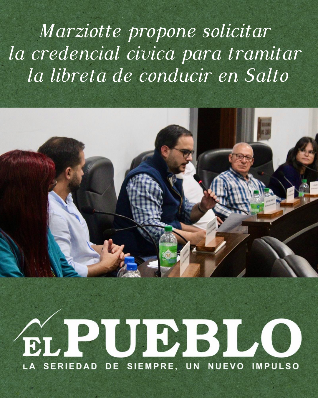 El edil departamental Facundo Marziotte (Coalición Republicana) presentó una exposición escrita ante la Junta Departamental de Salto proponiendo que se establezca, como requisito para tramitar la libreta de conducir, la presentación de la credencial cívica de serie “J”, tal como ya se aplica en el departamento de Soriano.